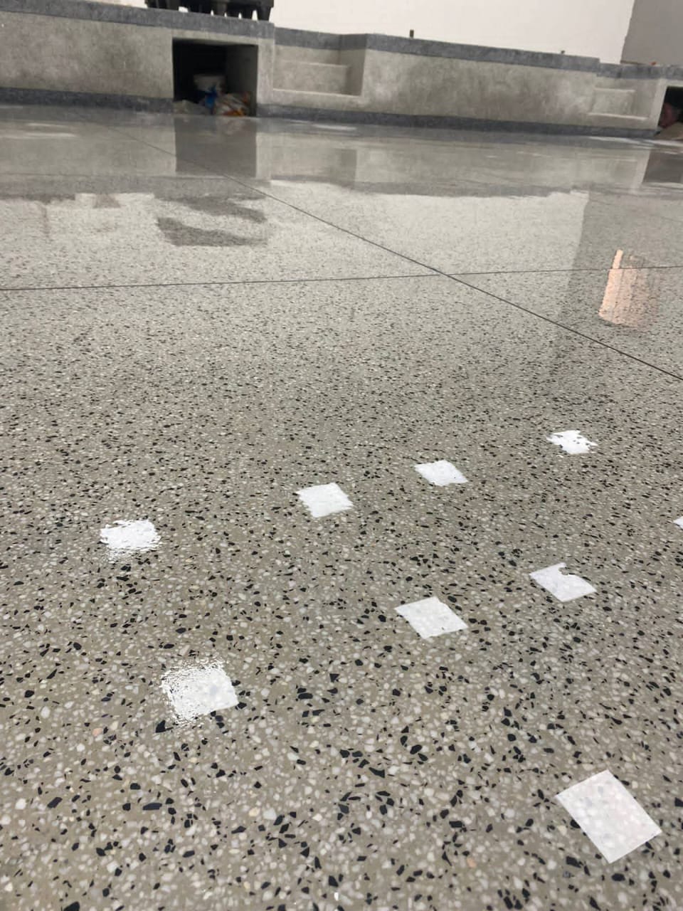 Já este tipo de piso pode também ser chamado de “piso resinado”, sendo composto majoritariamente de cimento e cal, bem como uma quantidade menor de granito, resinas de acrílico, quartzo e arenito. Isso garante a esse piso uma aparência mais uniforme e sem manchas, tal como um piso monolítico!